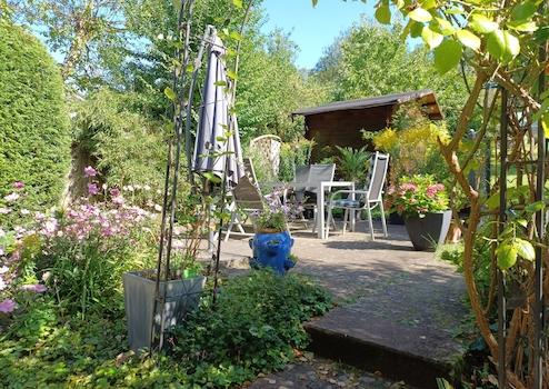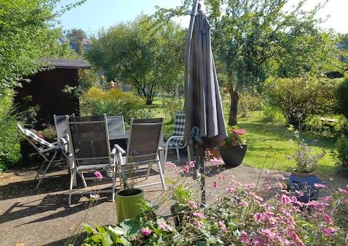 Der Garten ist bequem über die Küche erreichbar und auf der vorhandenen Terrasse lässt sich eine einladende Sitz- und Wohlfühlzone gestalten. Terrasse und Zuwege wurden im Jahr 2002 erneuert und betoniert; gleichzeitig wurde die komplette Drainage des Hauses instand gesetzt. Das angrenzende Wiesengrundstück eröffnet Ihnen weitere Gestaltungsmöglichkeiten – ob für Hobbygärtner, Naturfreunde oder Familien. Zudem besteht die Option, direkt am Haus einen eigenen Stellplatz anzulegen.