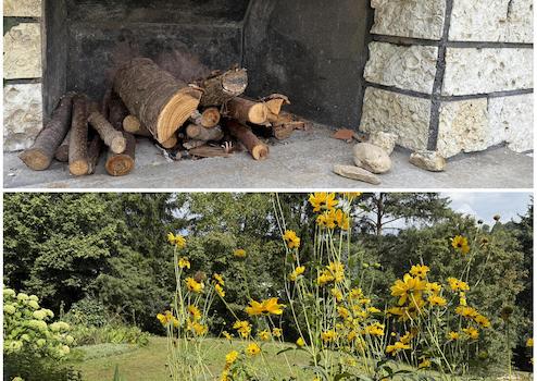 * gemütlicher Kaminofen im Innenbereich sowie Außenkamin