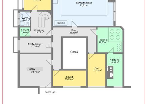 Das großzügige, renovierungsbedürftige Anwesen aus dem Jahr 1976 wartet darauf, in neuem Glanz zu erstrahlen. Mit einer Wohnfläche von rund 300 qm bietet dieses Flachdach-Einfamilienhaus reichlich Raum für die ganze Familie, Platz für Individualität, Kreativität und modernes Wohnen.