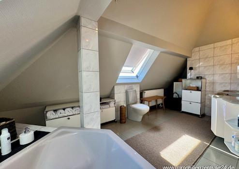 Im Dachgeschoss erwarten Sie drei komfortable Schlafräume, ein modernes Badezimmer mit Eckbadewanne sowie ein praktischer Abstellraum. Mit einer Gesamtwohnfläche von rund 174,81 m² bietet dieses Haus reichlich Platz für die ganze Familie.