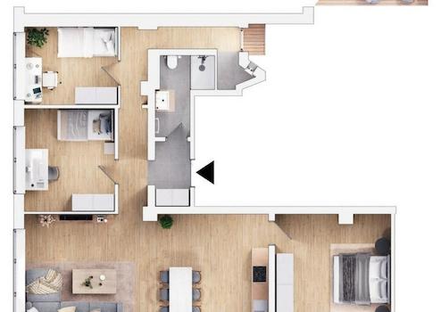 Die Wohnung beeindruckt mit großzügigen Raumhöhen, weiten Räumen und hochwertiger Ausstattung, wie Echtholzparkett, Fußbodenheizung, hochwertige Keramikgegenstände im Sanitärbereich, Videogegensprechanlage, 3-fach verglaste Fenster, eine vollständig regenerative Energieversorgung und vieles Mehr. 3 Schlafzimmer können vielseitig genutzt werden – zum Arbeiten, Schlafen, für die Kinder oder Gäste. Das Herzstück und Highlight ist der offene Wohn-, Ess- Kochbereich – eine Oase der Entspannung und des Lebens zugleich. Abgerundet wird dieses Schmuckstück durch eine gemütliche Terrasse im ruhigen Innenhof – hier lässt es sich nicht nur wohnen, sondern auch leben – ein Traum, den Sie sich verwirklichen können.