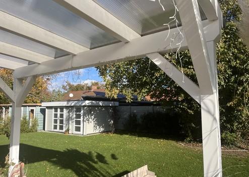 Ein Doppelcarport wurde errichtet und bietet auch Staufläche.