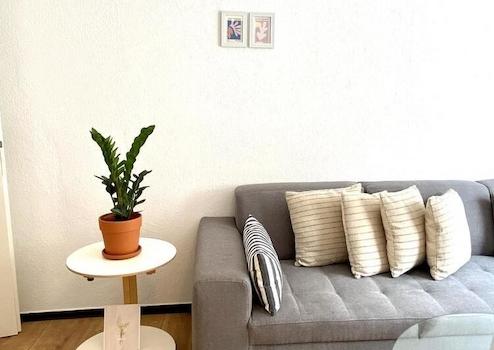 2 Zi.Whg., möbliert, 3. OG rechts, ruhige Innenstadtlage. Komplette und gute Ausstattung. Für 1 bis 2 Personen (Paar) geeignet. Nur für NR. Miete 1480,- €; Strom ist zuzügl. nach Verbrauch zu zahlen; entsprechend höher für 2 Personen. Monatliche Reinigung der Wohnung nach Absprache möglich (gg. Aufpreis). PKW-Stellplatz hinter dem Haus. Smart- TV und Internet/WLAN mit 50 MBit/s.