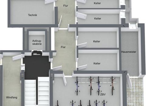 Eigenes Kellerabteil und gemeinsamer Fahrradraum.