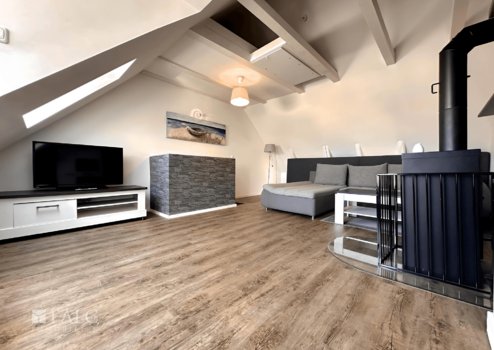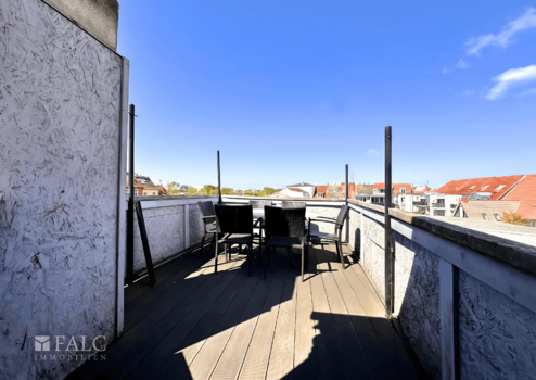 Das zweite Obergeschoss bietet einen lichtdurchfluteten Wohnraum mit Zugang zur Dachterrasse, die einen wunderschönen Blick über die Dächer der Altstadt eröffnet und an klaren Tagen sogar maritime Impressionen einfängt.