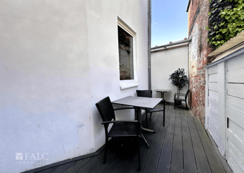 - Zugang zum Innenhof mit Terrasse und kleinem Abstellraum