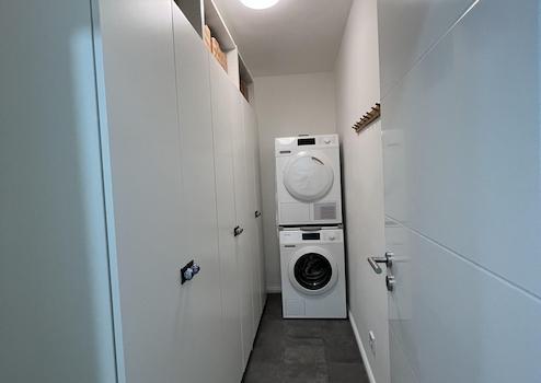 *Abstellkammer mit separatem Waschmaschinen und Trockner Anschluss und genug Stauraum*