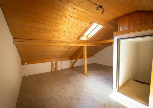 Ausgebautes Studio mit Holzdecke und Dachfenster – vielseitig nutzbar als Homeoffice, Gäste- oder Hobbyraum. Nicht in der offiziellen Wohnfläche enthalten, bietet aber wertvollen Extra-Raum.