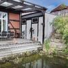 • Überdachte Terrasse am Haus mit Blick auf den Schwimmteich und in den