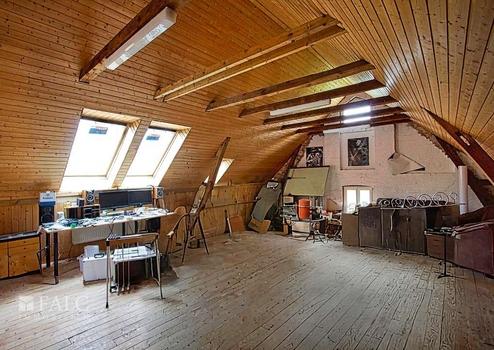 Weiter erwähnenswert ist der ausgebaute Spitzboden, auf dem sich die Heizungstherme befindet. Mit seiner großzügigen Fläche, Dielenboden und angenehmer Raumhöhe bietet er vielfältige Nutzungsmöglichkeiten – sei es als weiteres Zimmer, Atelier oder Rückzugsort.