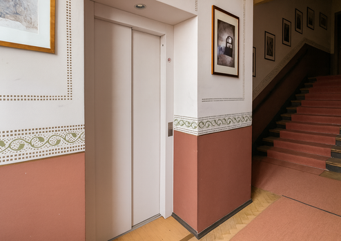 In einem repräsentativen Gründerzeithaus aus dem Jahr 1912, das 2015 unter Denkmalschutzauflagen aufwendig kernsaniert wurde, erwartet Sie Wohnen auf höchstem Niveau. Schon beim Betreten des Hauses vermittelt das stilvolle Entrée mit goldenen und bildhauerischen Verzierungen, feinen Stuckelementen und dem roten Teppich im Treppenhaus ein Gefühl von Eleganz und Geschichte. Ein moderner Lift, der jeweils auf halber Etage hält, sorgt für bequemen Zugang bis ins Dachgeschoss.