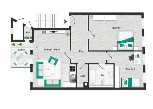 - Ca. 75,38 m³ Wohnfläche mit 3 Zimmern