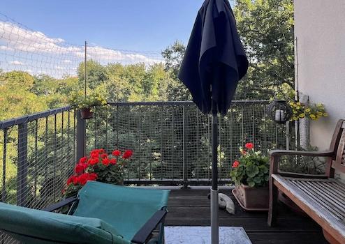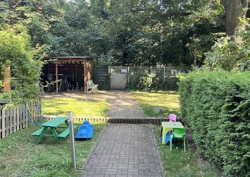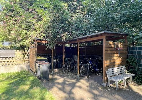 Praktische Details wie eine Abstellkammer auf halber Treppe, ein eigenes Kellerabteil sowie der gepflegte Innenhof mit grüner Gestaltung und überdachtem Fahrradabstellplatz sorgen für zusätzlichen Komfort.