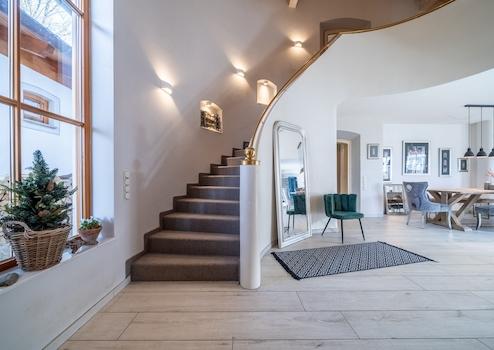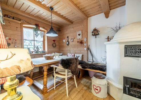 Luxuriöse Villa im Chalet Stil in sehr ruhiger Lage. Baujahr 2002, modernisiert bis 2023 ,massive Ziegelbauweise. Dach mit Holzschindeln eingedeckt. Fenster und Türen in Schreinerarbeit mit Segmentbögen gefertigt. Diese Villa verfügt über eine großzügige Eingangshalle mit Sichtdachstuhl. Der Blick schweift hier in den Wohnbereich mit offenem Kamin. Die hochwertige Mittelblock Einbauküche von Leicht mit Granitarbeitsplatte und Miele High End Geräten , grenzt an die gemütliche Bauernstube mit Kachelofen und die Outdoorküche mit weiterem uneinsehbaren Sitzbereich zum Essen und Feiern.