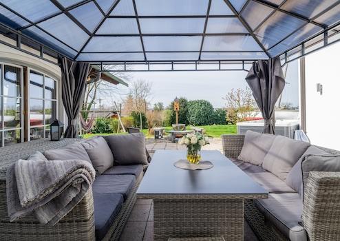 Herrliche Schwimmhalle mit Luxussauna im Almhüttenstil. Schwimmbad mit Unterflur Abdeckung komplett in 2020 / 2021 neu gebaut, Whirlpool innen und außen, Infrarot Wärmekabine