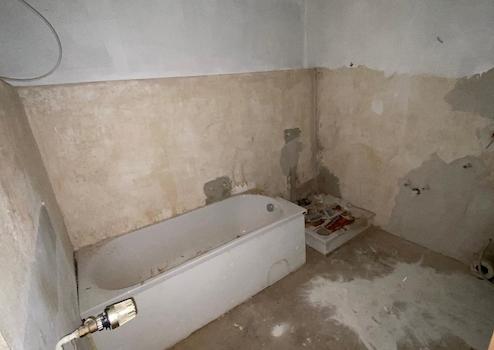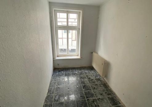 Die Einheit im Erdgeschoss wurde bisher gewerblich genutzt, bietet jedoch aufgrund der Raumaufteilung hervorragende Möglichkeiten für den Umbau zu einer großzügigen Wohnung. Aktuell unterteilt in Wohn- und Schlafzimmer, Küche, Bad sowie Abstellraum, kann sie alternativ problemlos weiterhin als Laden- oder Büroraum dienen – inklusive Lagerfläche und separatem Büro. Eine Renovierung, insbesondere die Fertigstellung des Sanitärbereichs, steht hier noch an. Wohnung im Obergeschoss mit Dachterrasse (ca. 80 m² auf zwei Ebenen)