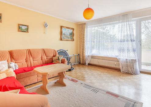 Der großzügige Wohnbereich bietet vielfältige Einrichtungsmöglichkeiten, eine optimale Belichtung sowie einen hochwertigen Parkettfußboden.