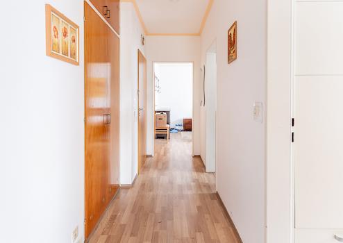 Ein praktischer Einbauschrank im Flur bietet zusätzlichen Stauraum für Staubsauger und Reinigungsutensilien.