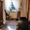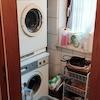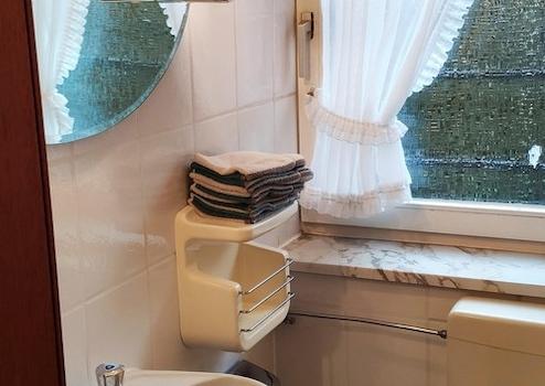 Das Badezimmer verfügt über eine Dusch-Badewanne, ergänzt durch ein separates Gäste-WC. Ein kleines Büro oder Gästezimmer mit direktem Zugang zum Garten eröffnet vielseitige Nutzungsmöglichkeiten – sei es für Homeoffice oder Besucher. Abgerundet wird die Ausstattung durch eine Garage mit Zugang von Straße und Garten, ein bis zwei Stellplätze auf der Einfahrt sowie einen kleinen Kellerraum, der über den Innenhof erreichbar ist.
