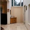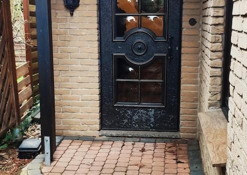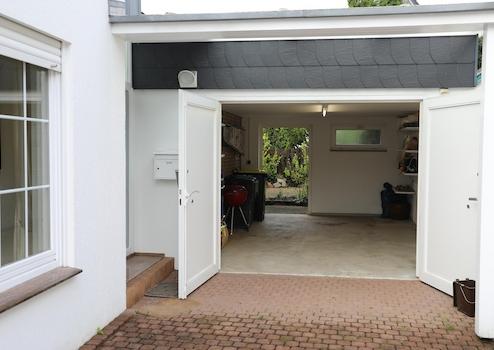 Besonders praktisch ist der barrierefreie Nebeneingang, der das flexible Erreichen des Hauses erleichtert. Der 2022 mit neuer Markise modernisierte Glas-Zwischengang verbindet die Bereiche des Hauses nicht nur funktional, sondern schafft auch ein lichtdurchflutetes architektonisches Highlight.