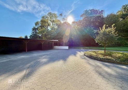 Umgeben von einem parkähnlichen Areal mit rund 20.000 m² Waldcharakter, altem Baumbestand und seltenen Pflanzen, darunter Moschus-Erdbeeren, Märzenbecher und Anemonen, sowie großzügigen Freiflächen bietet das Anwesen eine einzigartige Kombination aus Privatsphäre, Natur und repräsentativem Wohnen.