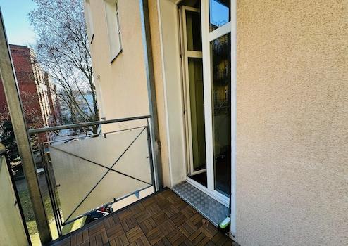 Der grosser Balkon ist zum ruhigen, gemütlichen, grünen Innenhof ausgerichtet.