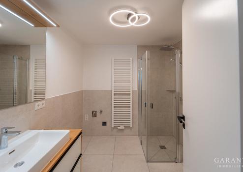 Zwei Schlafzimmer bieten vielseitige Nutzungsmöglichkeiten - Ideal als Eltern und Kinderzimmer, Gästezimmer oder Homeoffice. Besonders komfortabel ist die Ausstattung mit zwei modernen Badezimmern, eines davon En Suite. Beide Bäder überzeugen durch hochwertige Sanitärobjekte, bodengleiche Duschen, elegante Feinsteinfliesen und klare Linienführung. Der Eingangsbereich mit Windfang sorgt für einen angenehmen Empfang und unterstreicht die funktionale Aufteilung der Wohnung.