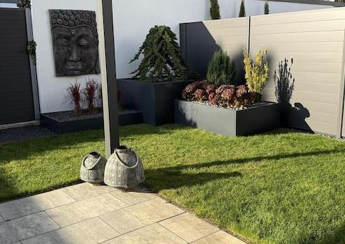 Pflegeleichte, strukturierte Bepflanzung mit klarer Linienführung