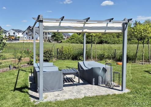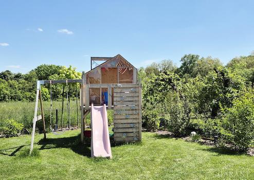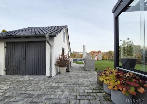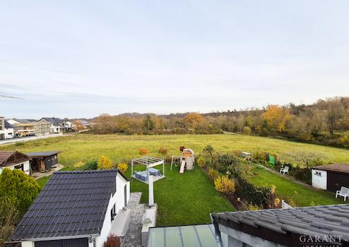 Beim Schritt auf die Terrasse öffnet sich der Blick auf den wunderschönen Garten: Spielmöglichkeiten für die Kinder, sonnige Plätze zum Relaxen und eine herrliche Feldrandlage - perfekt für entspannte Grillabende mit Familie und Freunden.