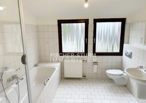- Großes Badezimmer mit Wanne, Dusche und Fenster