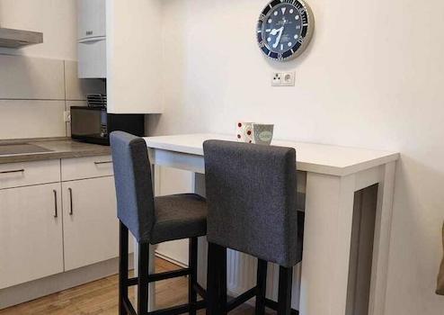4 Zi.-Wohnung, möbliert, 1. OG. 1 Wohn- und 1 Esszimmer, 1 geräumiges Schlafzimmer mit Kingsize-Bett (2 m x 2 m), 1 Büro bzw. Gästezimmer und eine gemütliche Wohnküche. Bad mit Dusche. Miete inkl. Neben- und Energiekosten 2750,- €. Internet bzw. WLan steht zur Verfügung, ebenso zwei PKW-Stellplätze auf dem Hof.