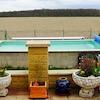 Der Pool 4m x 7m x 1,60m ist massiv hergestellt und kann mit einer Solaranlage 10 m² beheizt werden. Bereits ab April bis Oktober sind angenehme 20 – 27 Grad Wassertemperatur möglich.