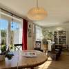 Die offene Wohn-/Esszimmer/Küche liegt südwestlich und fängt über die bodentiefen Sprossenfenster viel Tageslicht ein. Ein Hingucker ist der gemauerte Kamin, der an kalten Tagen für behagliche Wärme sorgt. Im Kaufpreis enthalten ist die eingefasste Küche mit Elektrogeräten und einem komfortablen Steh- und Esstresen.