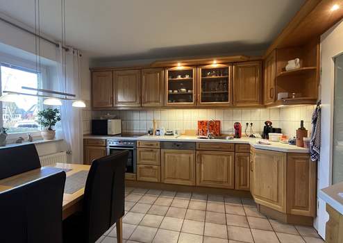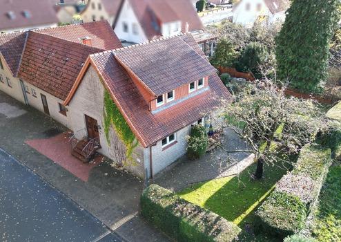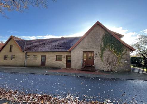 Diese großzügige Immobilie, auf einem 743 m² großen Eigentumsgrundstück, sucht Sie ab sofort als neuen Eigentümer. Ihr zukünftiges Zuhause besteht aus zwei Bauabschnitten. Das Nebengebäude mit ca. 115 m² Nutzfläche wurde in den 1950/1960er Jahren erbaut - das jetzige Wohnhaus wurde 1972 als Stallerweiterung erbaut und 1994 durch eine umfangreiche Kernsanierung zu einem Wohnhaus umgebaut und verfügt nun über stolze ca. 130 m² Wohnfläche und teilt sich wie folgt auf: Im Erdgeschoss werden Sie durch einen großzügigen, zentralen Flur/Diele empfangen. Von hier aus gelangen Sie in alle Räume - die große Küche mit Einbauküche, das angrenzende Esszimmer mit Zugang nach draußen und in das helle Wohnzimmer mit einem schönen Kaminofen aus 2018. Erfreuen Sie sich hier an der wohligen Kaminwärme an gemütlichen Wintertagen. Von der Diele aus gelangen Sie ebenso in den zweiten Flur mit einem Nebeneingang nach draußen, das Badezimmer mit Wanne, Waschmaschinen- und Trockneranschluss und in den Heizungs- und Abstellraum. Hier befindet sich die 1992 eingebaute ÖL-Heizung (Die Heizung muss gem. Energieberater nicht ausgetauscht werden). Vom Heizungsraum aus gelangen Sie auf die überdachte Terrasse und in den Garten. Hierzu später mehr.