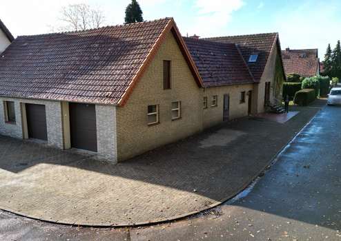 Vom Terrassenbereich, sowie von der Straße aus gelangen Sie in das bereits erwähnte Nebengebäude mit reichlich Platzangebot. Hier erwarten Sie drei große Räume, einen Durchgangsraum und zwei großzügige Garagen mit elektrischen Toren. Einer der Räume war ein ehemaliger Pferdestall. Von hier aus gelangt man auf den zusätzlichen Dachboden, welcher noch nicht in den 115 m² Nutzfläche berücksichtigt ist. Platzprobleme gibt es also definitiv nicht. 2012 wurden hier bereits einige Fenster ausgetauscht.
