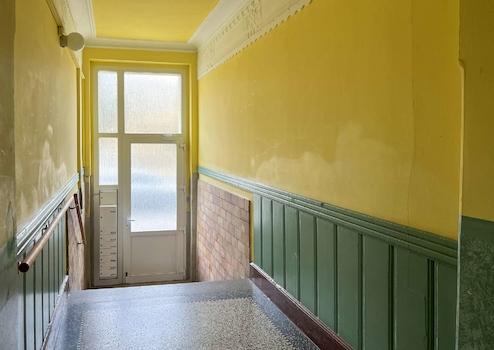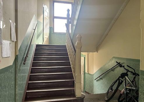 Das mit Stuckverzierungen ausgestattete Treppenhaus führt Sie zum Eingang der Wohnung. Innen angekommen, empfängt Sie ein geräumiger Flurbereich, der zentralen Zugang zu allen Zimmern gewährt. Die Wohnung verfügt über zwei gut arrangierte Schlafzimmer, die sich ideal für Familien, Paare oder zur Nutzung als Home-Office eignen. Die Küche ist großzügig gestaltet und bietet genügend Raum zum Kochen. Angrenzend finden Sie ein Tageslichtbad mit Badewanne und Waschmaschinenanschluss. Das Wohnzimmer, als Herzstück der Wohnung, bietet reichlich Platz für individuelle Einrichtungsideen.