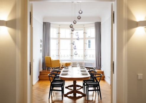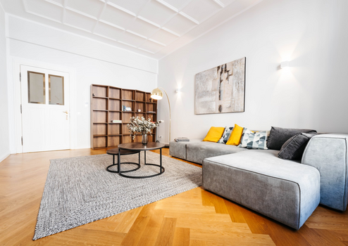 Böden: Edles Fischgrätparkett, das die hohen Decken und die Altbau-