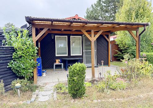 Ihr Lieblingsplatz, um Ruhe und Gelassenheit zu tanken. Dieser Bungalow besticht durch seinen hellen Wohn- und Essbereich mit direktem Zugang zur überdachten Terrasse. Ein separates Schlafzimmer sorgt für ruhige Nächte, während die helle, möblierte Küche und das freundliche Duschbad für Komfort sorgen. Ein praktischer Eingangsflur bietet Platz für Schuhe, Garderobe&Co. Im Jahr 2012 wurde das Dach erneuert. Auf der Westseite befinden sich Abstellräume für Fahrräder und Rasenmäher. Ideal für spontane Ausflüge und für die Gartenpflege. Die ruhige, sonnige Lage garantiert entspannte Tage am See und unmittelbare Nähe zu Erholungsmöglichkeiten. Nutzen Sie die Chance! Wir freuen uns auf Ihren Kontakt.