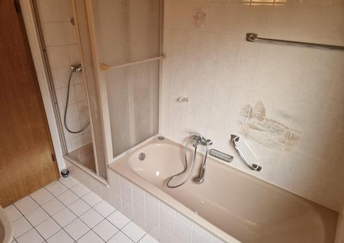 •Badezimmer mit Badewanne und Dusche