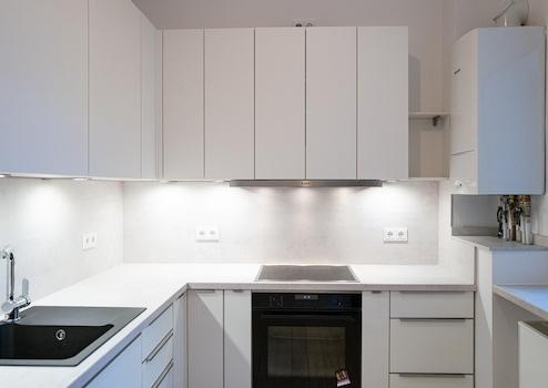 - begradigte, neu verputzte und weiß gestrichene Wände in der gesamten Wohnung