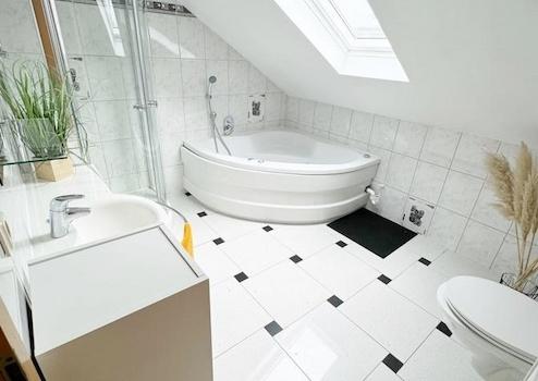 Die Obergeschosswohnung bietet ca. 66 m² Wohnfläche auf mehreren Ebenen und überzeugt mit Fußbodenheizung, einem modernen Whirlpoolbad sowie einem klimatisierten Schlafzimmer für höchsten Wohnkomfort.