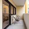 Das Schlafzimmer verfügt über einen eigenen Zugang zu einem zweiten Balkon, der nach Norden ausgerichtet ist. Der Blick in den grünen Innenhof verleiht diesem Bereich eine ruhige, fast abgeschirmte Qualität und macht ihn zu einem Ort, an dem der Tag angenehm ausklingen kann.
