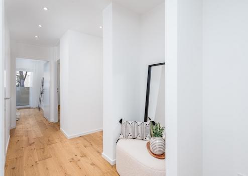 Die Wohnung befindet sich im ersten Obergeschoss eines gepflegten Mehrfamilienhauses aus dem Jahr 1978 und präsentiert sich nach einer umfassenden Modernisierung – einschließlich der gesamten Elektrik und sämtlicher Bodenbeläge – in einem sofort bezugsfertigen Zustand. Auf rund 75 Quadratmetern entsteht ein harmonisches Wohngefühl, das durch klare Gestaltungslinien und sorgfältig ausgewählte Materialien geprägt ist.