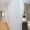 Ein besonderes Augenmerk verdient das Badezimmer, das mit modernen Morassi-Feinsteinzeug-Fliesen, Fußbodenheizung, Badewanne und einem zeitgemäß gestalteten Waschtisch ausgestattet ist. Hier verbinden sich praktische Anforderungen mit einem spürbaren Komfort, der an eine dezente Spa-Atmosphäre erinnert.