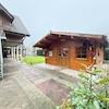 Ein gepflegtes Zierbeet schmückt die Vorderseite des Hauses. Die linke Hausseite wurde mit einer ansprechenden Kieselfläche samt dekorativem Wasserspiel gestaltet. Im rückwärtigen Bereich befindet sich ein charmantes Holzgartenhaus, ausgestattet mit kleiner Küchenzeile, Ofen und separatem WC – ideal als Hobbyraum oder gemütlicher Rückzugsort. Der überdachte Balkon auf dem Garagendach erweitert besonders die Oberwohnung um einen geschützten Außenbereich, der sich zu jeder Jahreszeit als privater Wohlfühlort nutzen lässt.