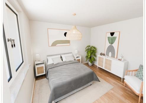 Das Dachgeschoss bietet ebenfalls ein geräumiges Schlafzimmer und ein weiteres Zimmer, ebenfalls als Kinderzimmer nutzbar, aber auch als Home-Office oder als Gastzimmer.