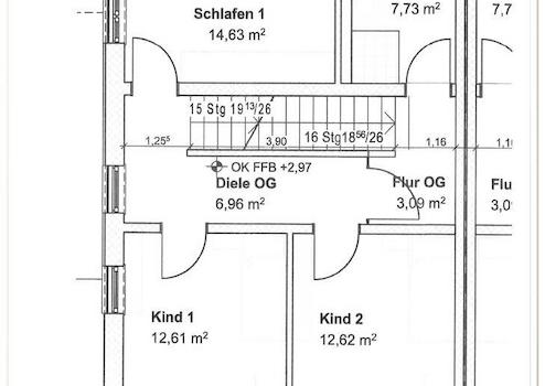 Im 1.Obergeschoss (erfreulicherweise ohne Schrägen) befinden sich 3 geräumige Schlafzimmer und ein Bad mit Wanne und Dusche.
