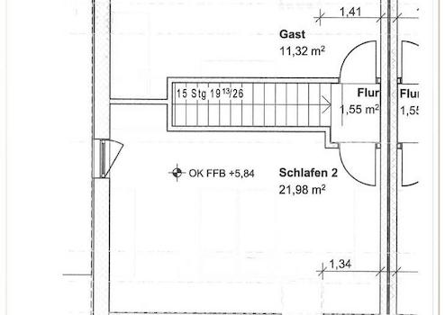 Im Erdgeschoss befindet sich der Dreh- und Angelpunkt wohl jeder Familie: der Koch,- Ess,- und Wohnbereich, in unserem Fall besonders schön und großzügig, mit einer Größe von ca. 50 m² und Ausgang zur Südwest-Terrasse. Daneben gibt es auf dieser Etage noch den Eingangsbereich mit Platz für eine Garderobe, und das Gäste-WC.
