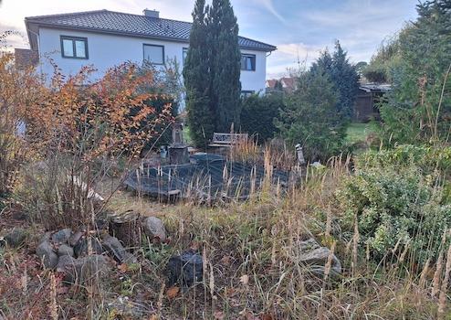 hier können Sie noch kreativ werden. Ein geschmackvoll angelegter und überdachter Freisitz ist bereits vorhanden.