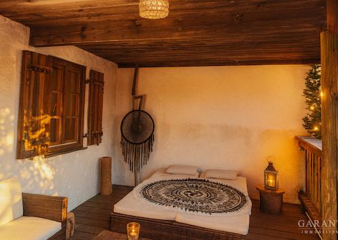 Schon beim Betreten entfaltet sich die besondere Ausstrahlung dieses Objekts: Warme Blockholzwände, sichtbare Balken und weiß gekalkte Naturputzwände schaffen eine harmonische, authentische Atmosphäre. Der offene Wohn- und Essbereich begeistert mit viel natürlichem Licht, gemütlicher Sitzecke und einem stilvollen Chalet-Flair, das durch die Liebe zum Detail spürbar wird.